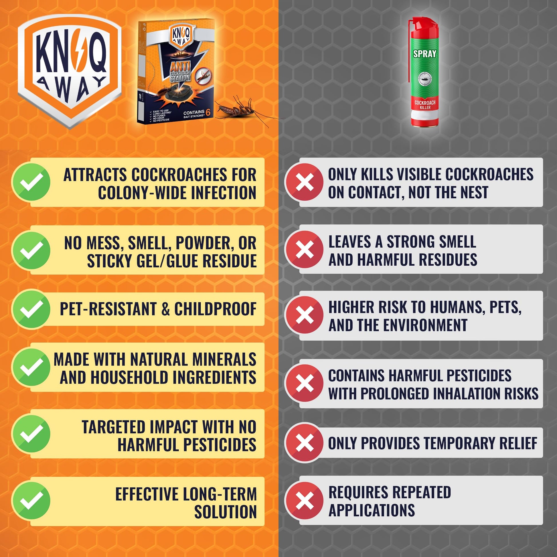 KNOQ AWAY Cockroach Bait is an effective solution designed to eliminate cockroaches and prevent infestations in your home or business.🌱